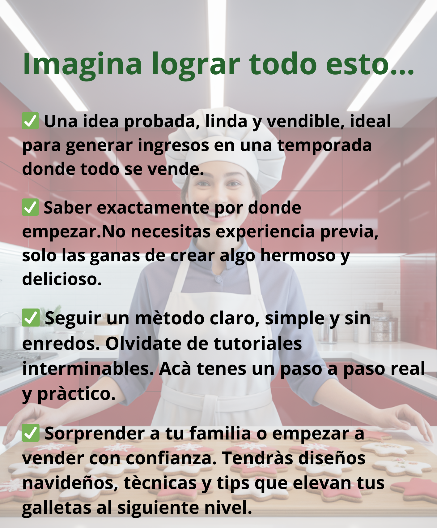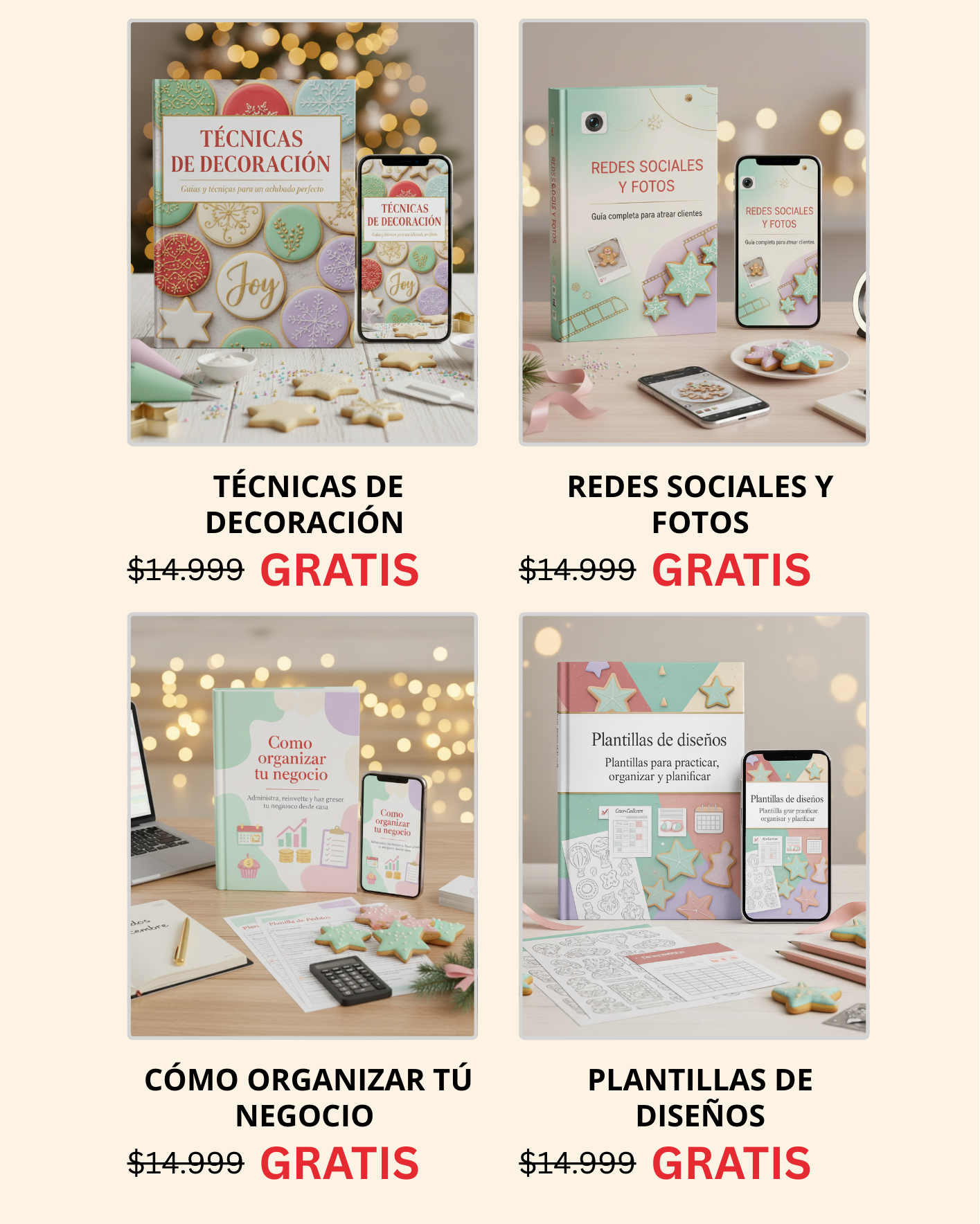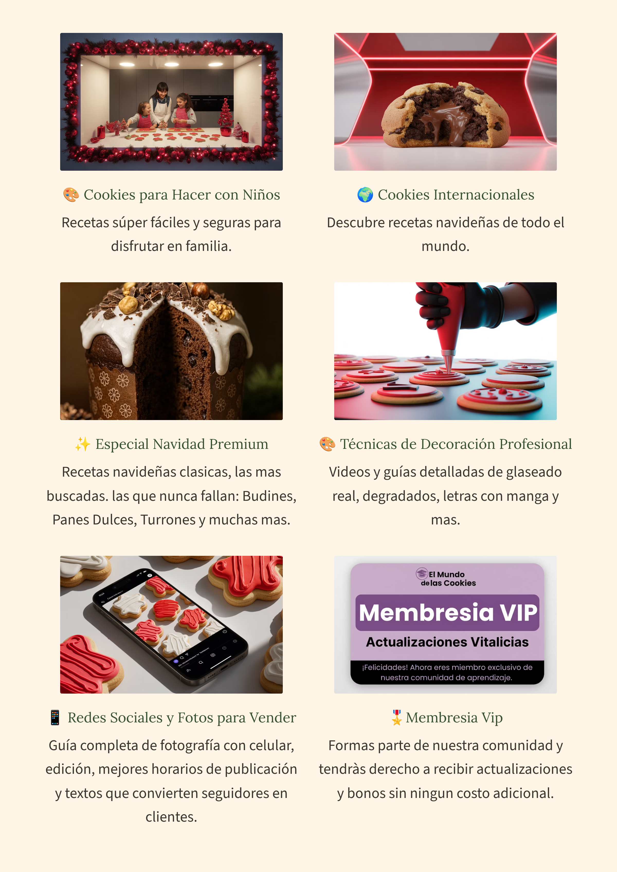 ¡Absolutamente! De hecho, fue creado pensando en personas que nunca hicieron galletas decoradas. Explicamos cada técnica desde cero, con lenguaje simple y claro. Además, el bono de "Cookies para hacer con niños" tiene las recetas más fáciles para que arranques sin miedo.