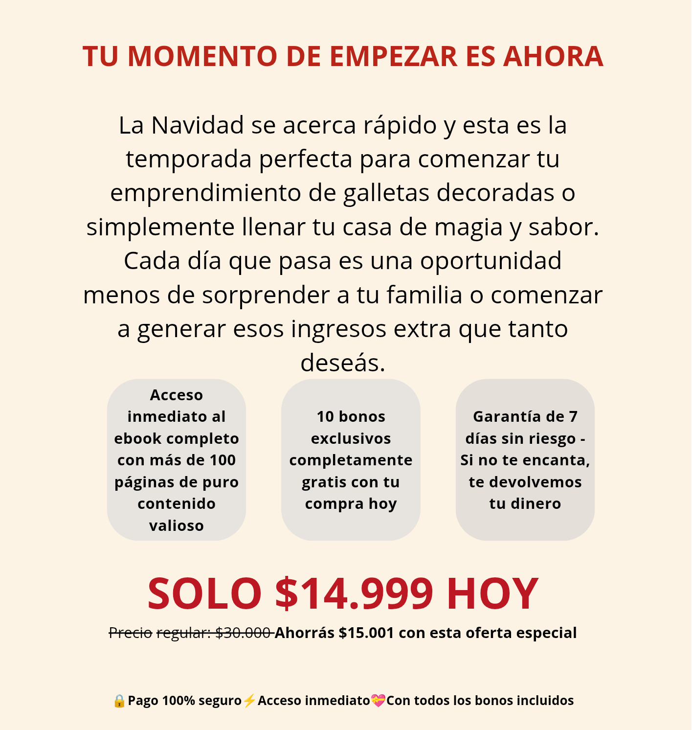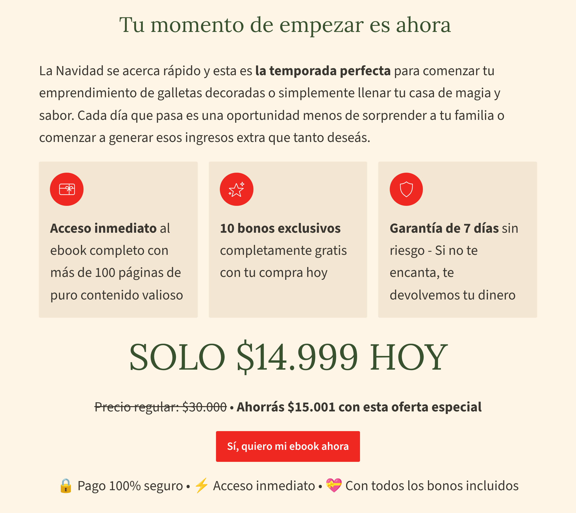 ¡Inmediatamente! Apenas completes tu pago, te llega un email con el link de descarga. En menos de 5 minutos ya podés estar leyendo y planificando tus primeras galletas navideñas. No hay tiempos de espera ni envíos físicos.